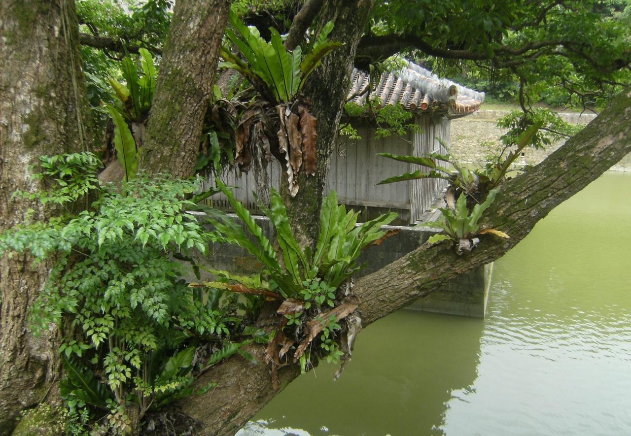 大木にオオタニワタリ