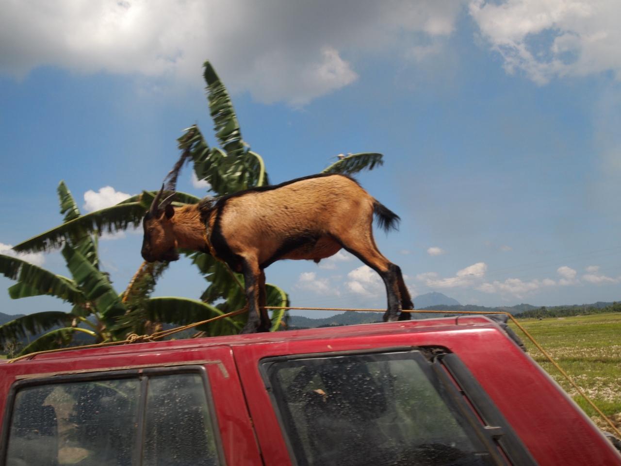 車の天井裏に固定されたヤギ(alive)を追い抜く -