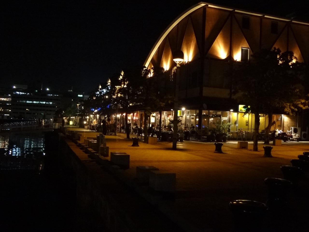 新しく出来た飲食店街、港を散歩するだけでも楽しいです。 -