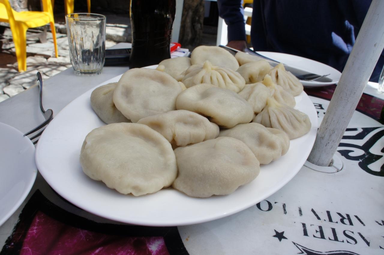 グルジアの代表的な食べ物・ヒンカリです。1個30円程度。小龍包を大きくしたような感じ。1つで3個分はあるかも。4個しか食べれないって言ったのに、大皿にあふれんばかりのヒンカリが出てきました。