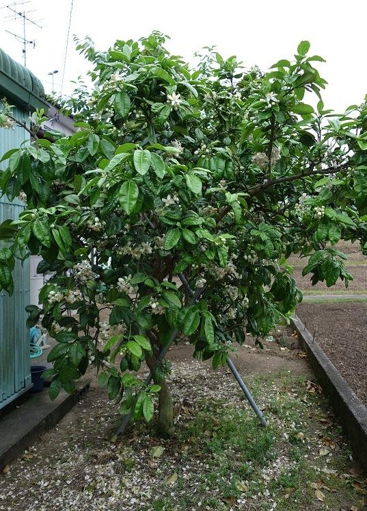 ミカンの花が咲いていて敷地内甘い香りが漂っています。 -