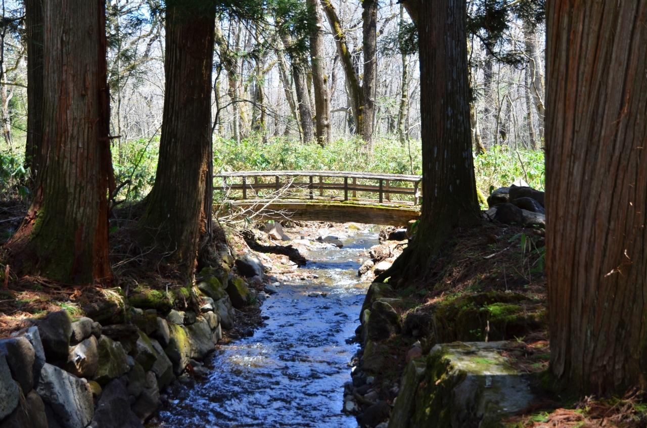 で、森林地帯のパスを歩いて随神門まで行って、そこから水芭蕉群生地(水芭蕉園)をまわってもどってくることに。 -