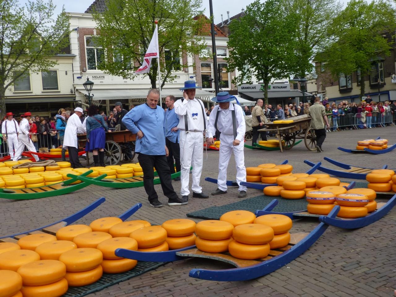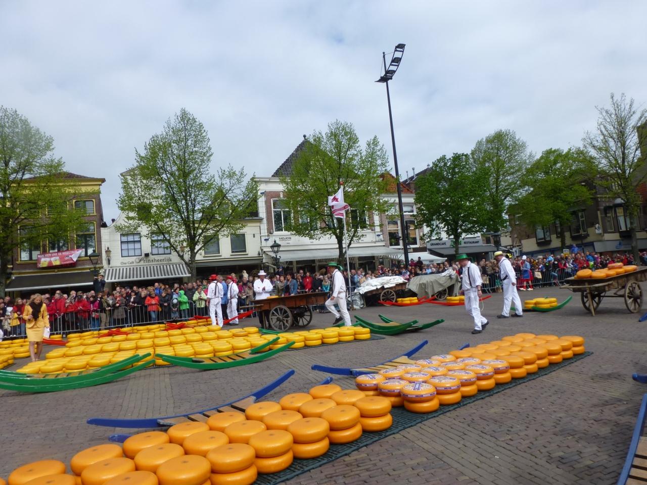チーズ市のずら〜っと並んだチーズとオランダ国旗