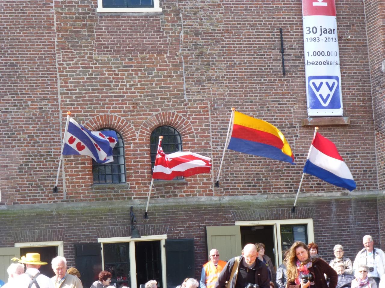 オランダフリースラント州の旗が、青と白のストライプに赤いハートのかわいい旗でした。