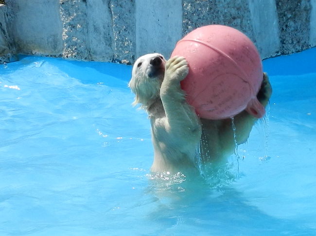 これはお母さんの真似をして、足をつこうとしたけれど、プールに落ちそうになって慌てた時・・・歓声が上がりました。