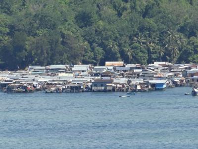 バスや列車で行けるところはだいたい行った。あとは海の離島くらいしかないのですが、マヌカン島やマヌティック島などの観光ビーチには興味が湧きません。他にどこかいい場所ないかなと海を眺めていると..ありました! それは、すぐ正面に見えているガヤ島の水上集落(写真)。誰もが気になっているのに、誰も行こうとしない。そうなれば、私の出番でしょう。ここが観光地かどうかは別として..。 -