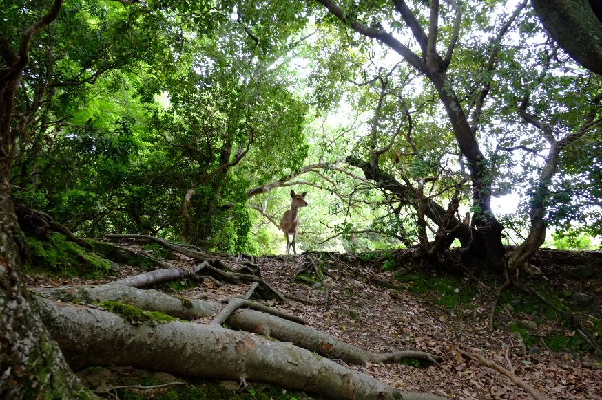 あ、木々の間から鹿さんがこっちを見てる!