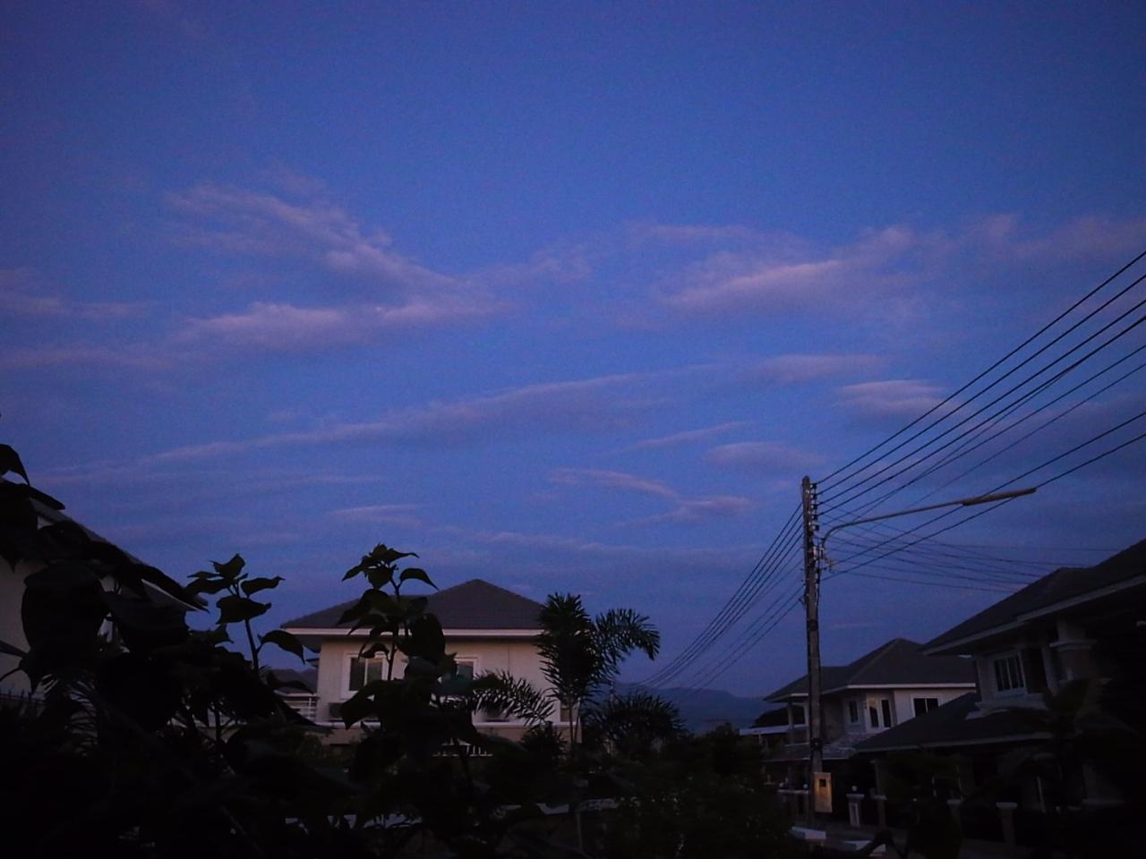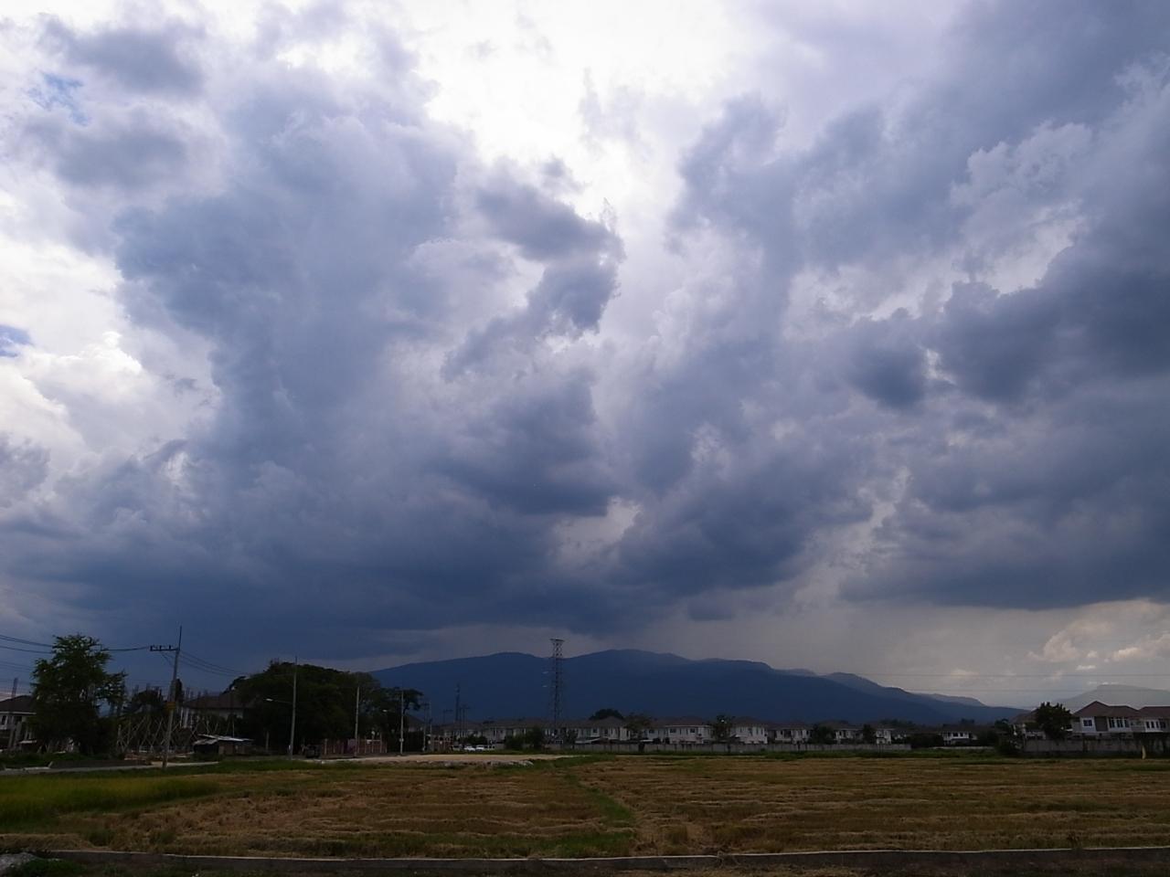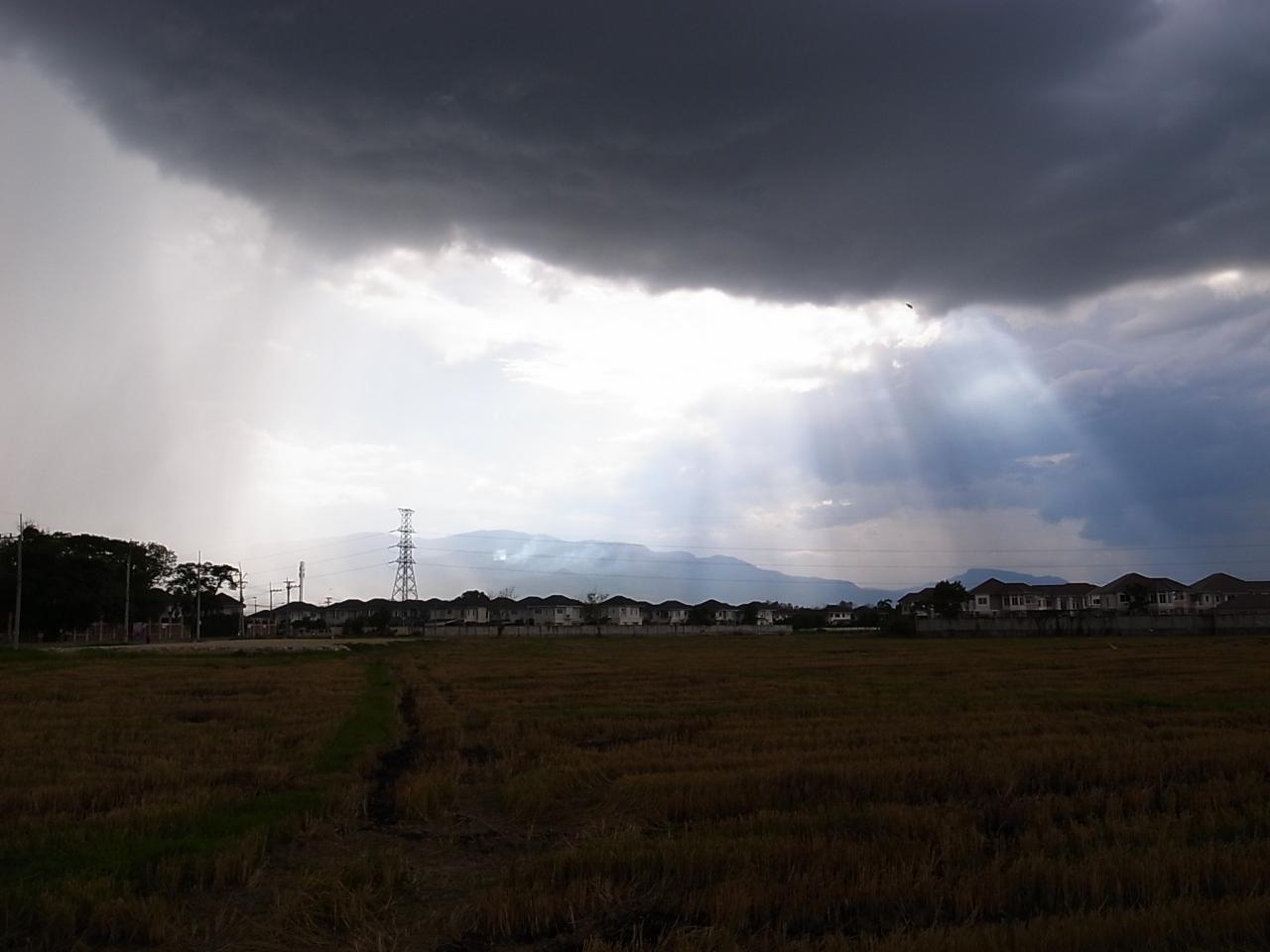 夕方黒雲が現れた。画面の左側の地域はすでに雨が降っているのだろう。
