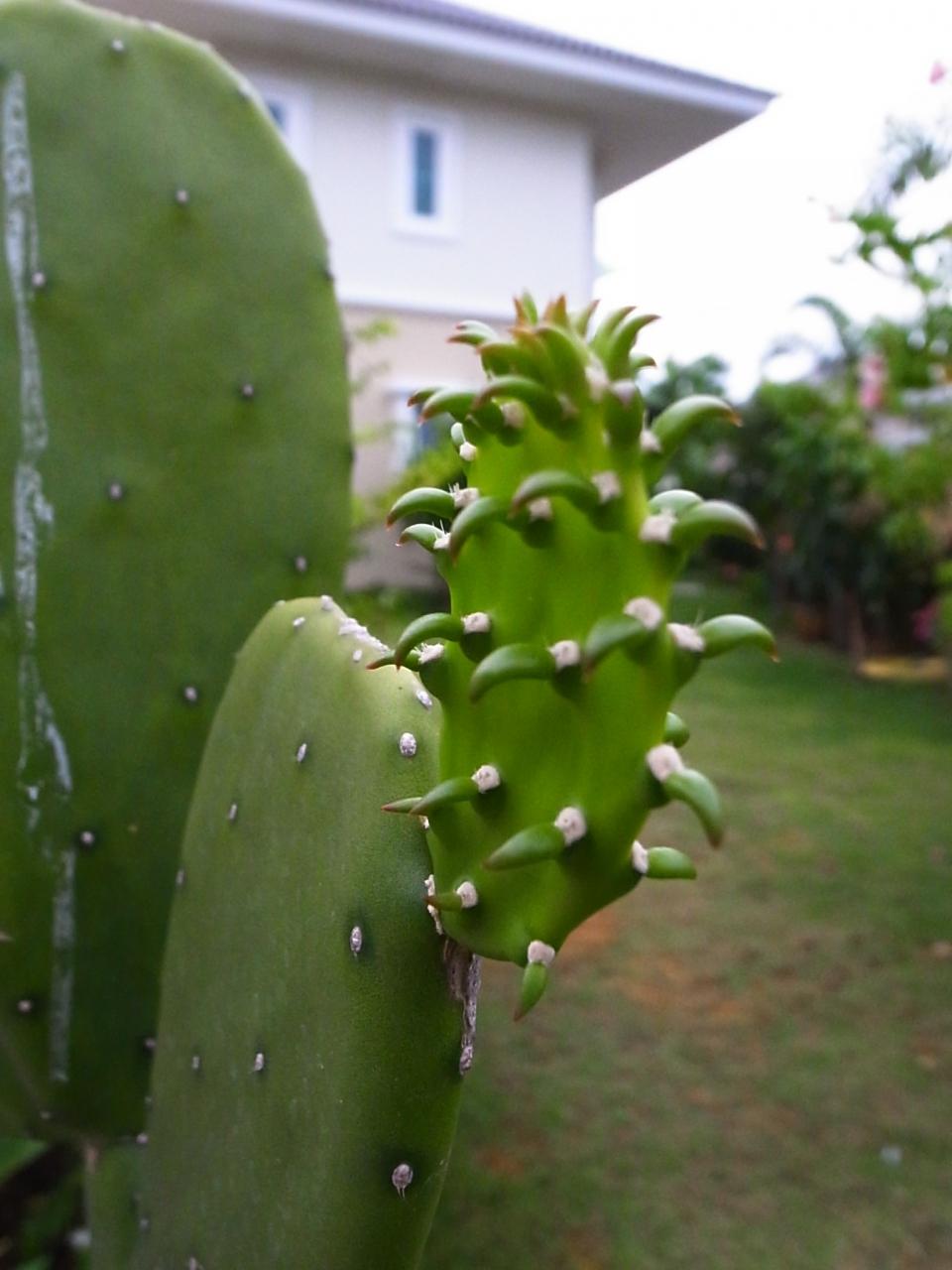 最初のうちこそ少し葉(?)が増えたものの、ここ10か月ほどは変化がなく、色も緑色が少し黄色がかってきて、この土地では育たないかな、と思っていたら、最近になって小さな葉(?)が二つも出てきた。 -