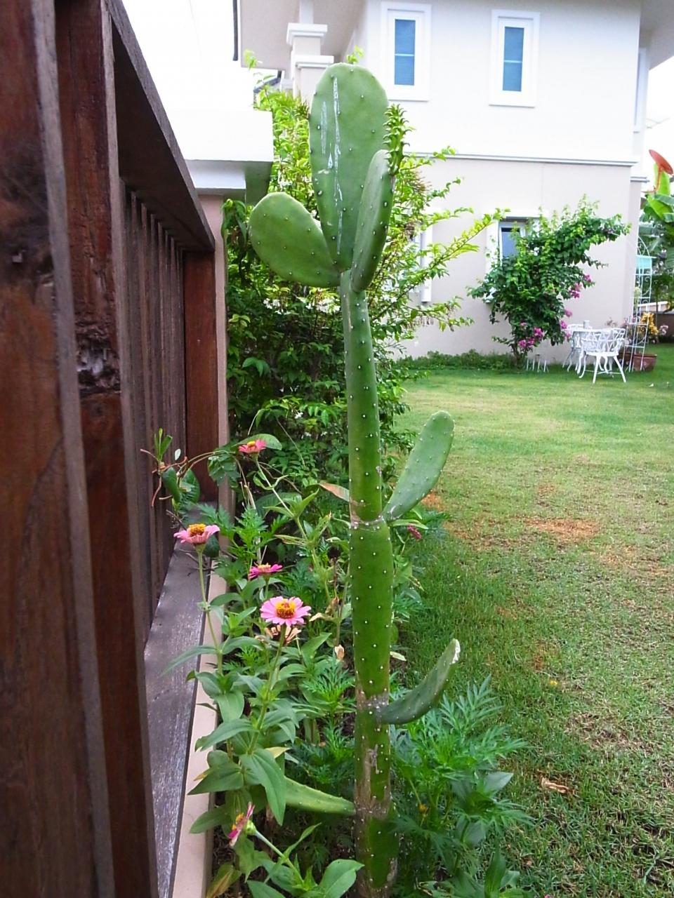 1年前、庭の片隅に植木屋さんでおまけにもらったサボテンを植えておいた。