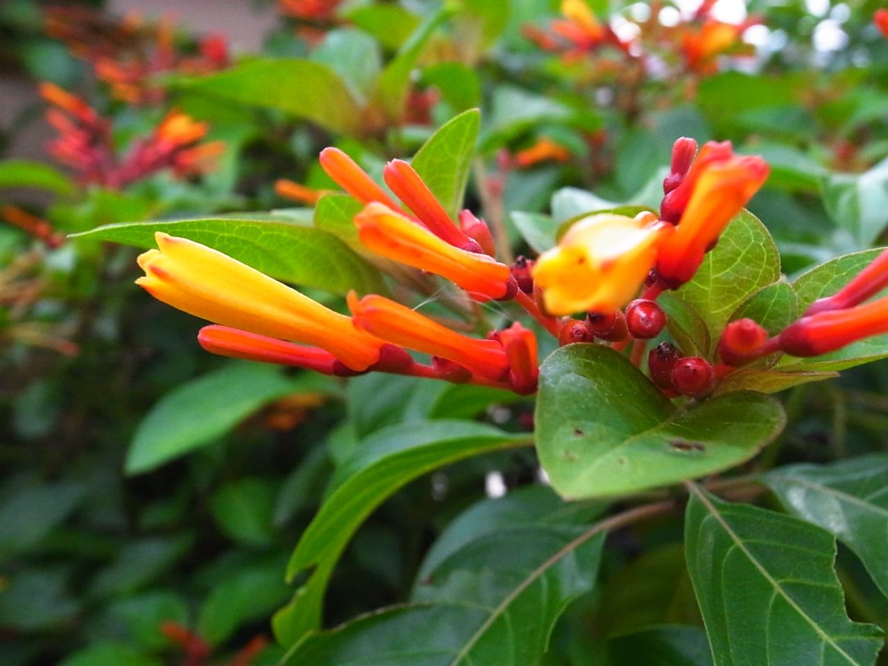 この花の蜜を吸いに、スズメの半分くらいの大きさのハチドリ(?)がやってくる。