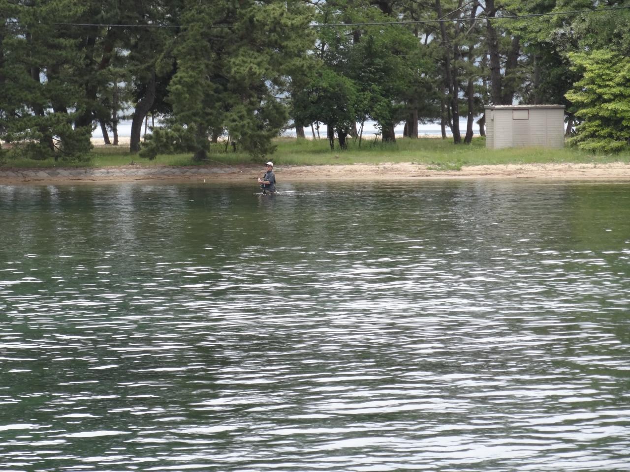 15分ほどの船旅です。こんな場所でも釣り人が居ます。