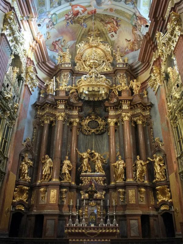 メルク修道院の大広間の天井絵、どこが本物の大理石で、だまし絵はどこの部分??と、じっくり眺めましたがその違いが分かりませんでした。