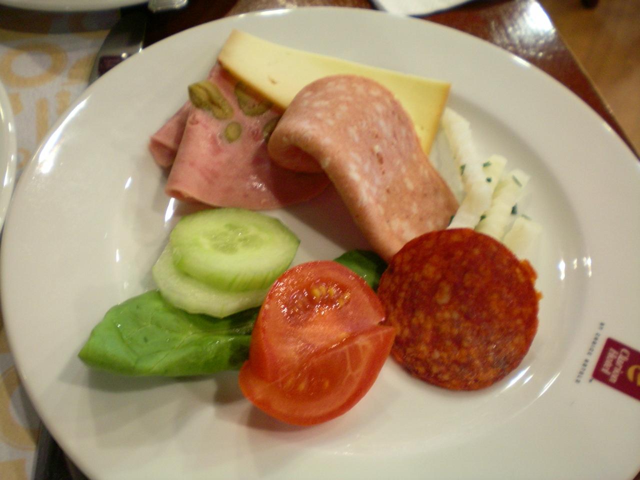 左のハーブ入りのパンが食べ慣れない味で、歯磨き粉が口に残ったままパンを食べたみたいな感じ…(^o^;) -