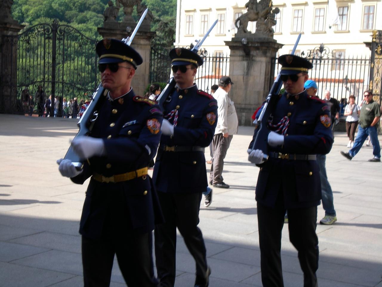 毎正時に行われる衛兵交替式に向かう衛兵さん。