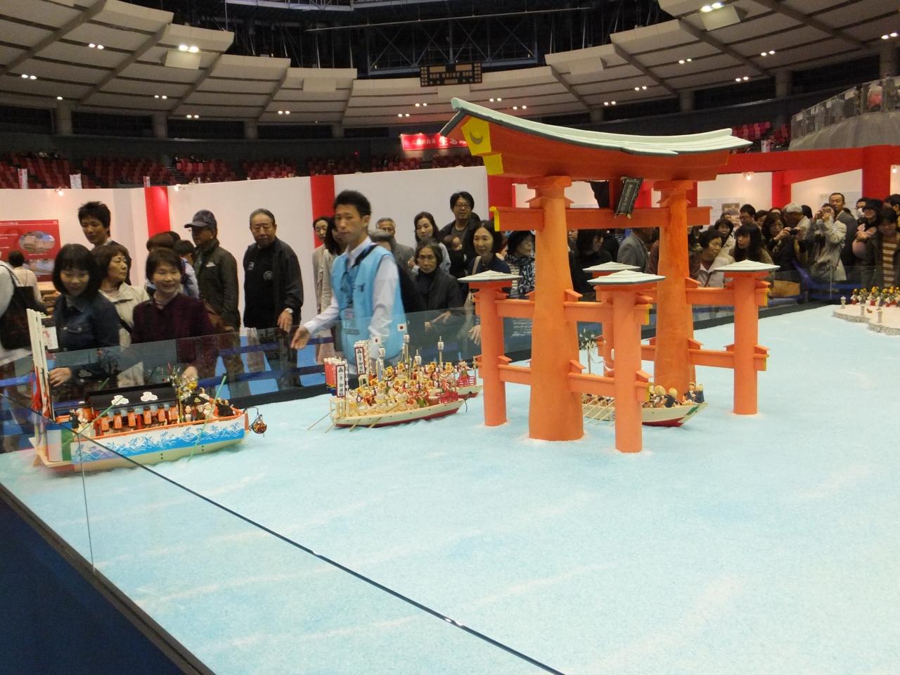 厳島神社を模した菓子。菓子専門学校の生徒たちの可愛らしい作品など。