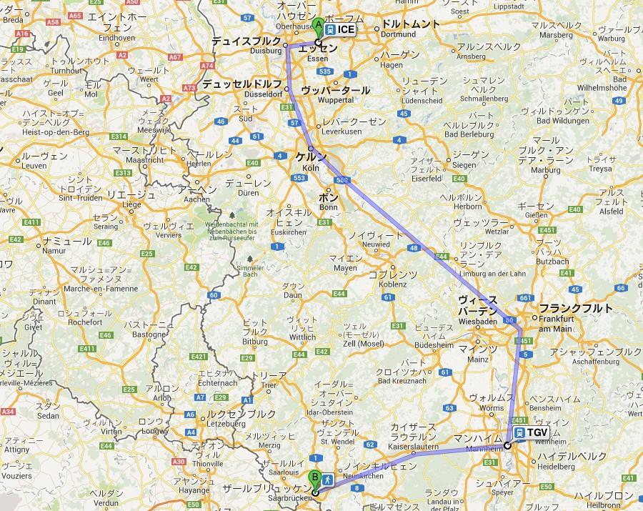 エッセンからザールまで、ICE乗り換えで4時間半。