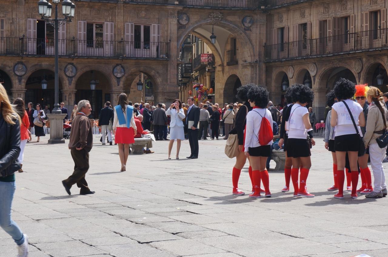マヨール広場では、卒業を祝う家族の記念写真や若者のパフォーマンスでとても賑わってました。