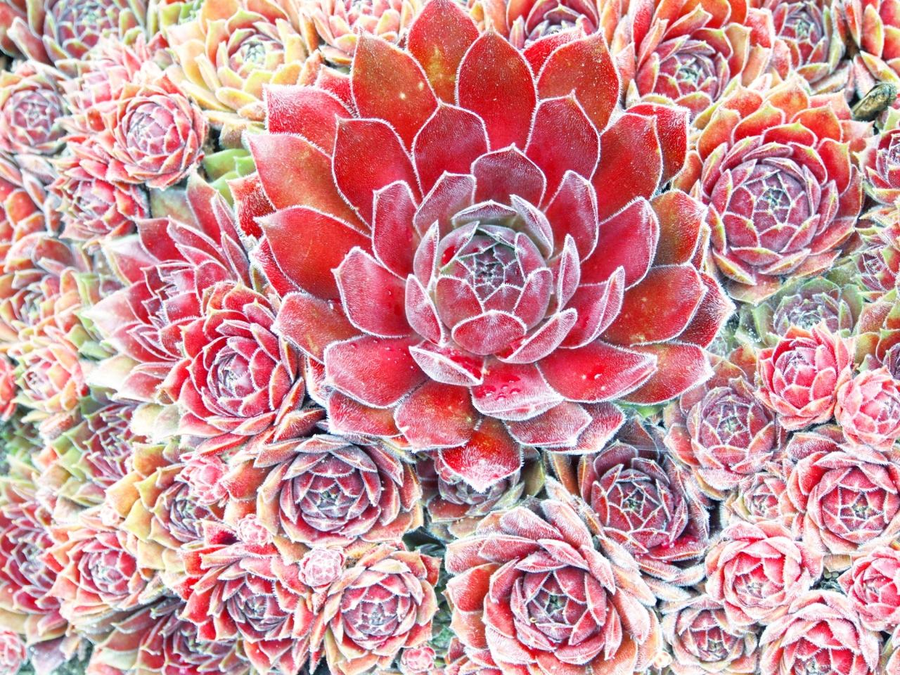 赤い多肉植物もゴージャスでなんだか和の模様みたい。