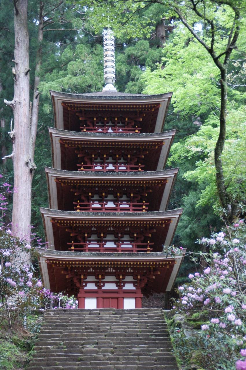 2番目に古い塔で、屋外では日本最小の五重塔です。 -