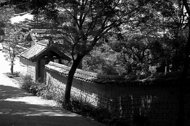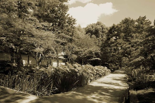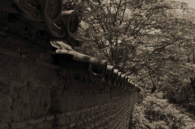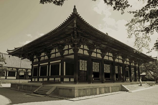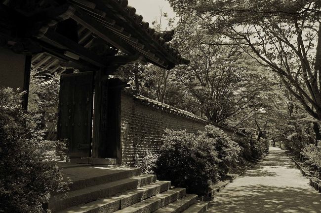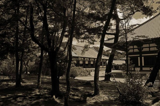 前回の喜光寺から唐招提寺に。バイパスなど近代化の跡はあるのだが、奈良はあちこちに天平や昭和など時代が隠れている。白黒で撮るかカラーで撮るか悩みまくります。いやいやフォトショップで処理するときですが・・・唐招提寺の駐車場(500円)に止める。入場料は600円。近鉄のガイドブックの割引券で500円ではいる。人は土曜10時で少ない目。薬師寺の人手とは大違いと聞いていたが納得。機嫌よく見る事ができました。寺に入る前から天平や昭和や時代の名残がざくざく・・・・ガキの頃の昭和40年代にもどったよう。中に入りあれこれ散策。土塀の美しさに感動しました。蓮は、喜光寺の方が良かったです。開花時期もこちらのほうが遅いようでまだまだでした。しかし時を感じることや苔など素晴しい情景があり、思わず撮影しまくってしまいました。唐招提寺(とうしょうだいじ)は奈良市五条町にある鑑真が建立した寺院。南都六宗の1つである律宗の総本山である。本尊は廬舎那仏、開基(創立者)は鑑真である。井上靖の小説『天平の甍』で広く知られるようになった中国・唐出身の僧鑑真が晩年を過ごした寺であり、奈良時代建立の金堂、講堂を初め、多くの文化財を有する。