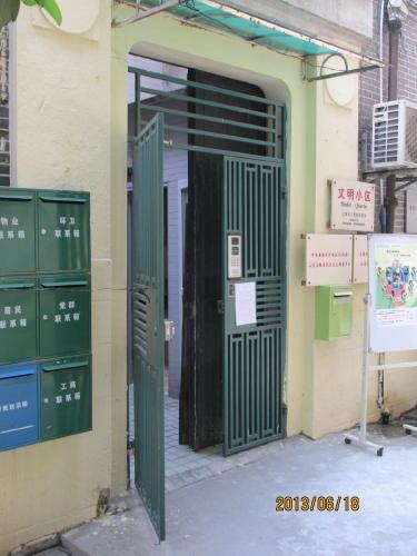 上海は泥棒が多いので玄関や窓には鉄の扉が付いています。更に部屋のドアも鉄の扉を付けた二重扉、鍵も二重に付いています。 -