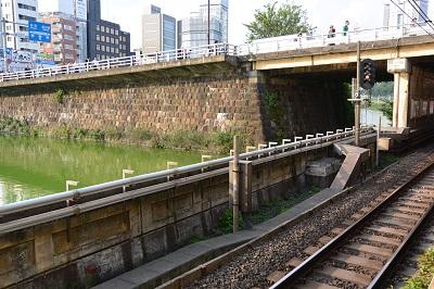 このあたりの外濠は埋められていて、上智大学のグラウンドになっていたり、JR四ッ谷駅になっていたりする。四谷見附橋から見下ろした様子。お堀を埋め立てて電車が走ってるなんて、昔の人は想像できないだろうな〜