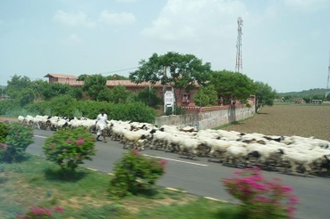 あの道路状況で、人力車や馬車、ロバ車、牛、羊や山羊の群れ、犬。