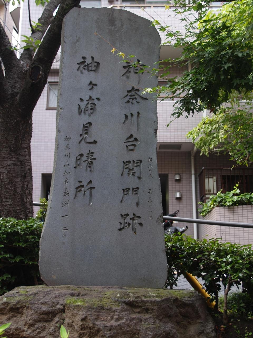 「神奈川台関門跡 袖ヶ浦見晴所」碑。