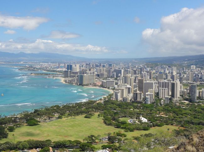 ダイヤモンドヘッドの頂上から見たワイキキは美しい。
