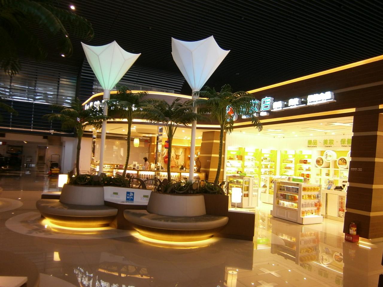 手前が化粧品専門免税店。右側が出国管理ブース。