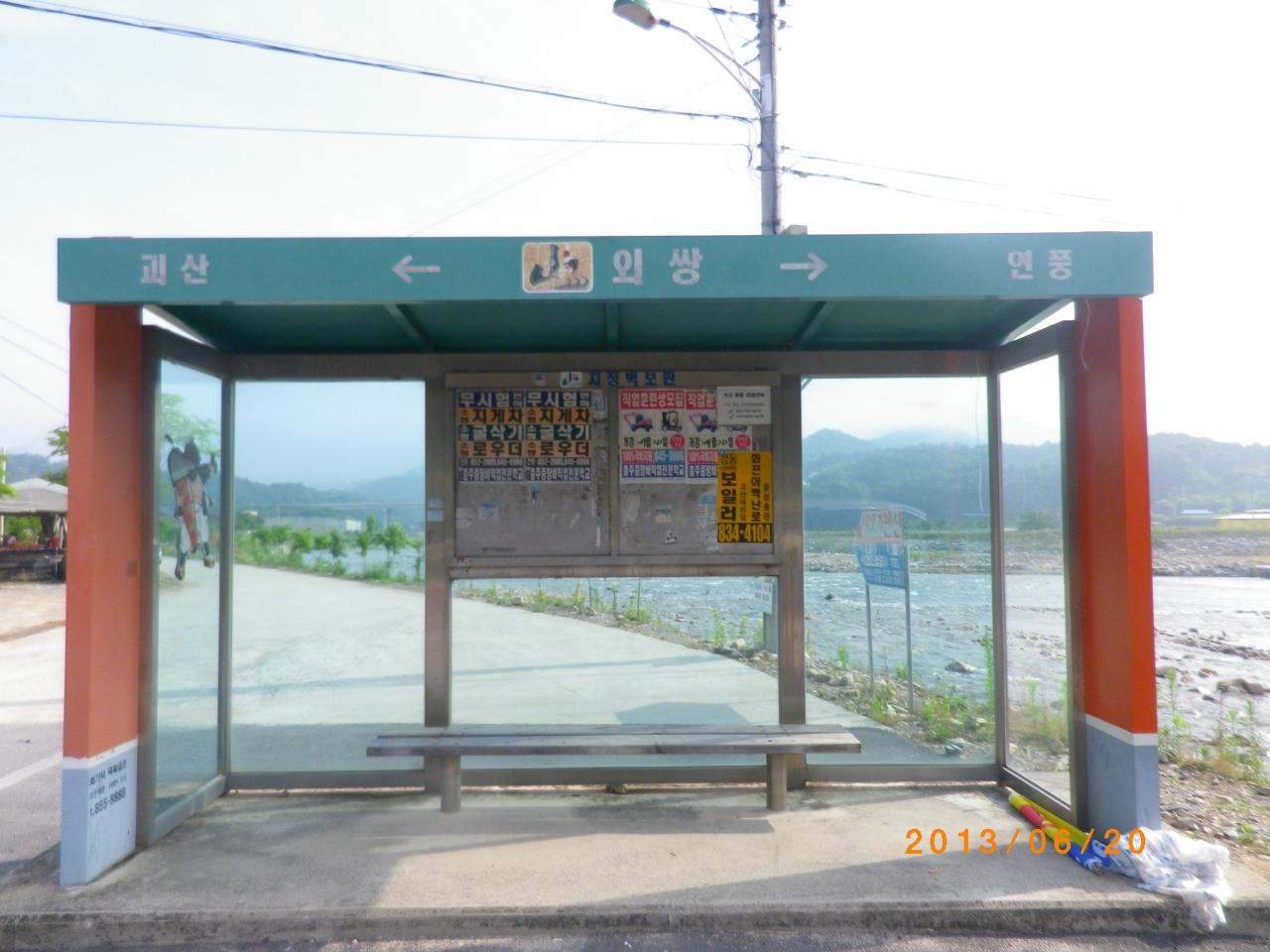 橋を渡った所にはバス停があり、帰りはバスに乗ってケサン市街に戻る予定 -