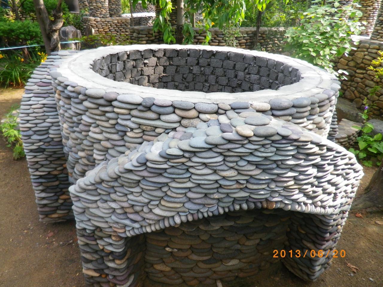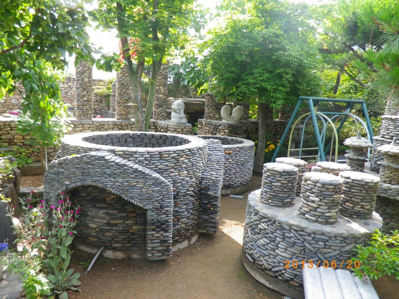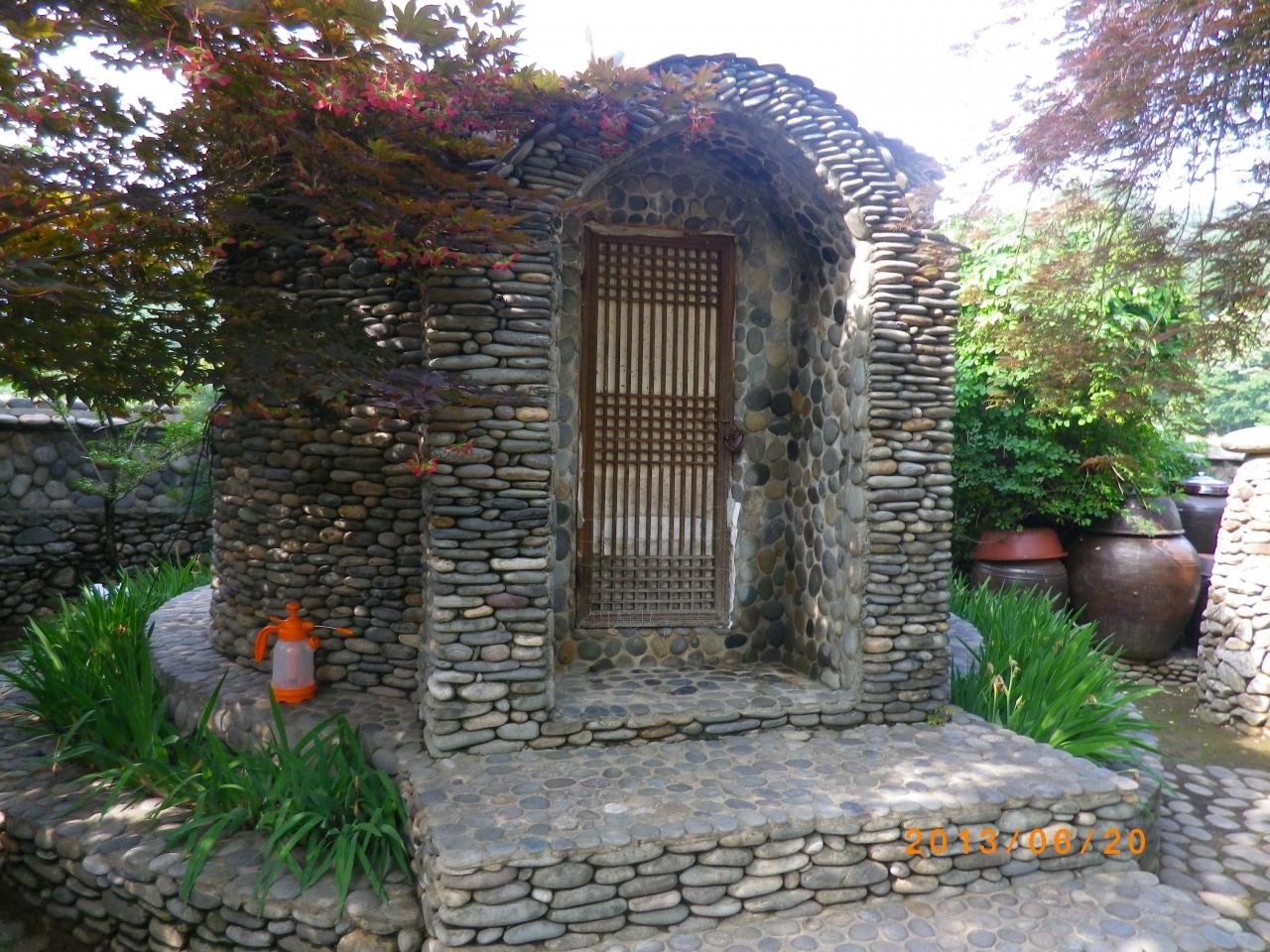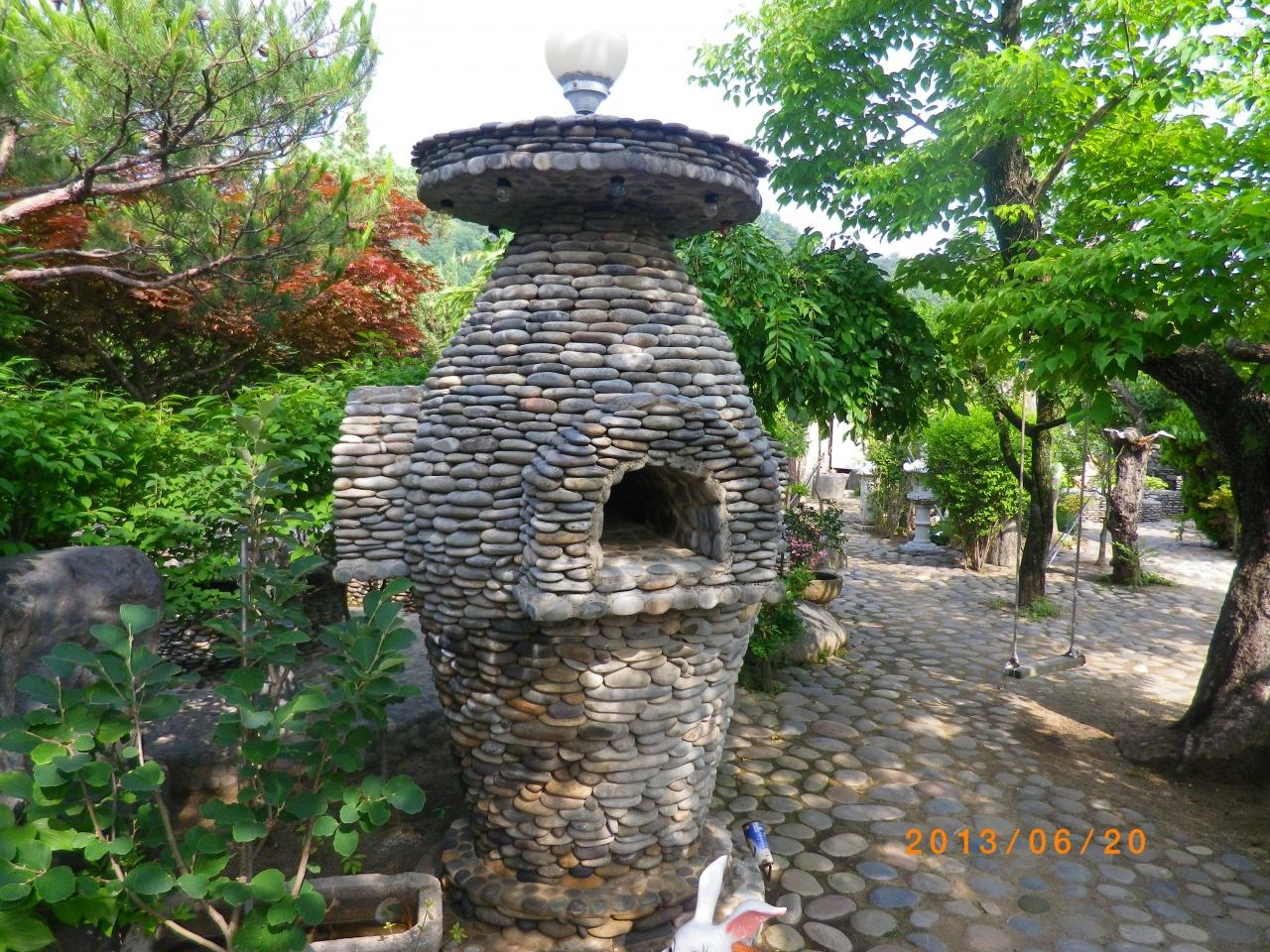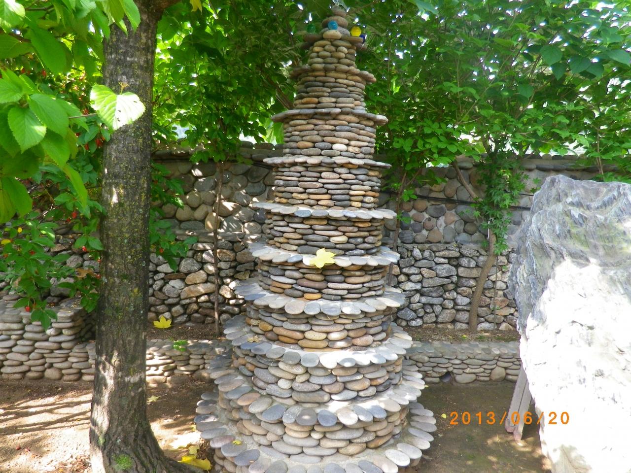 この家のご主人が約25年間かけて石を積み上げ築いたもので、