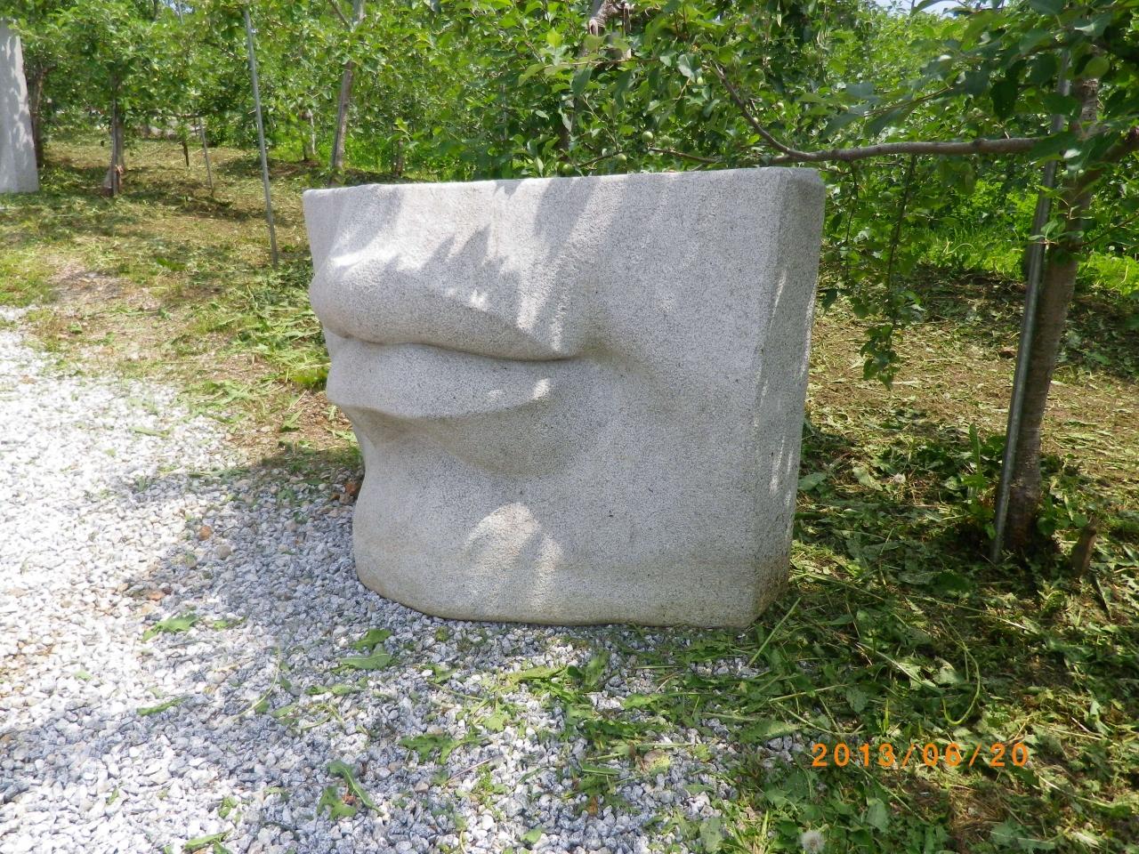 真ん中には石造りの植木鉢 -