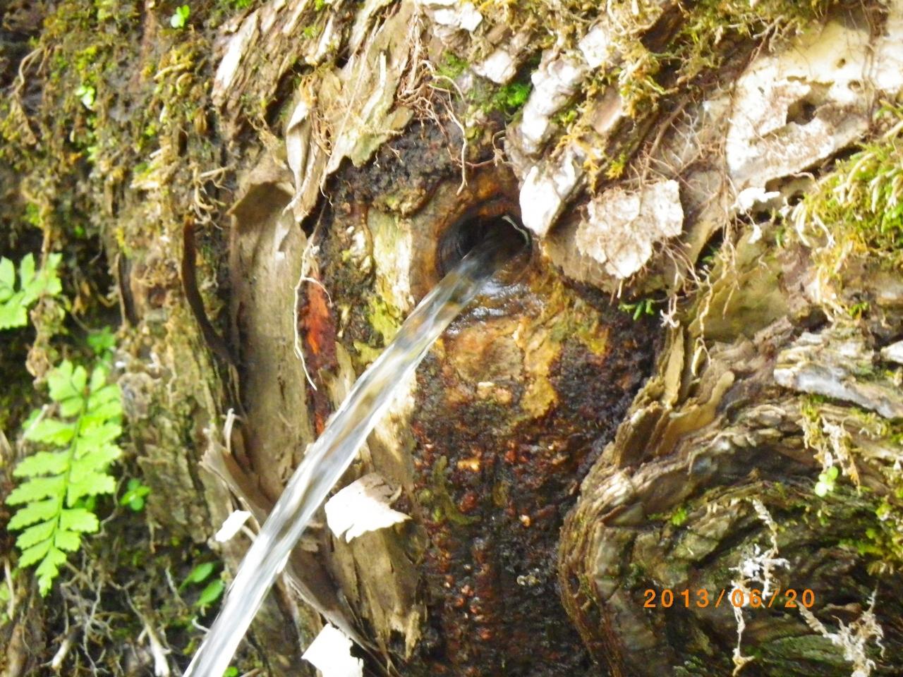 木から水が湧き出ている。