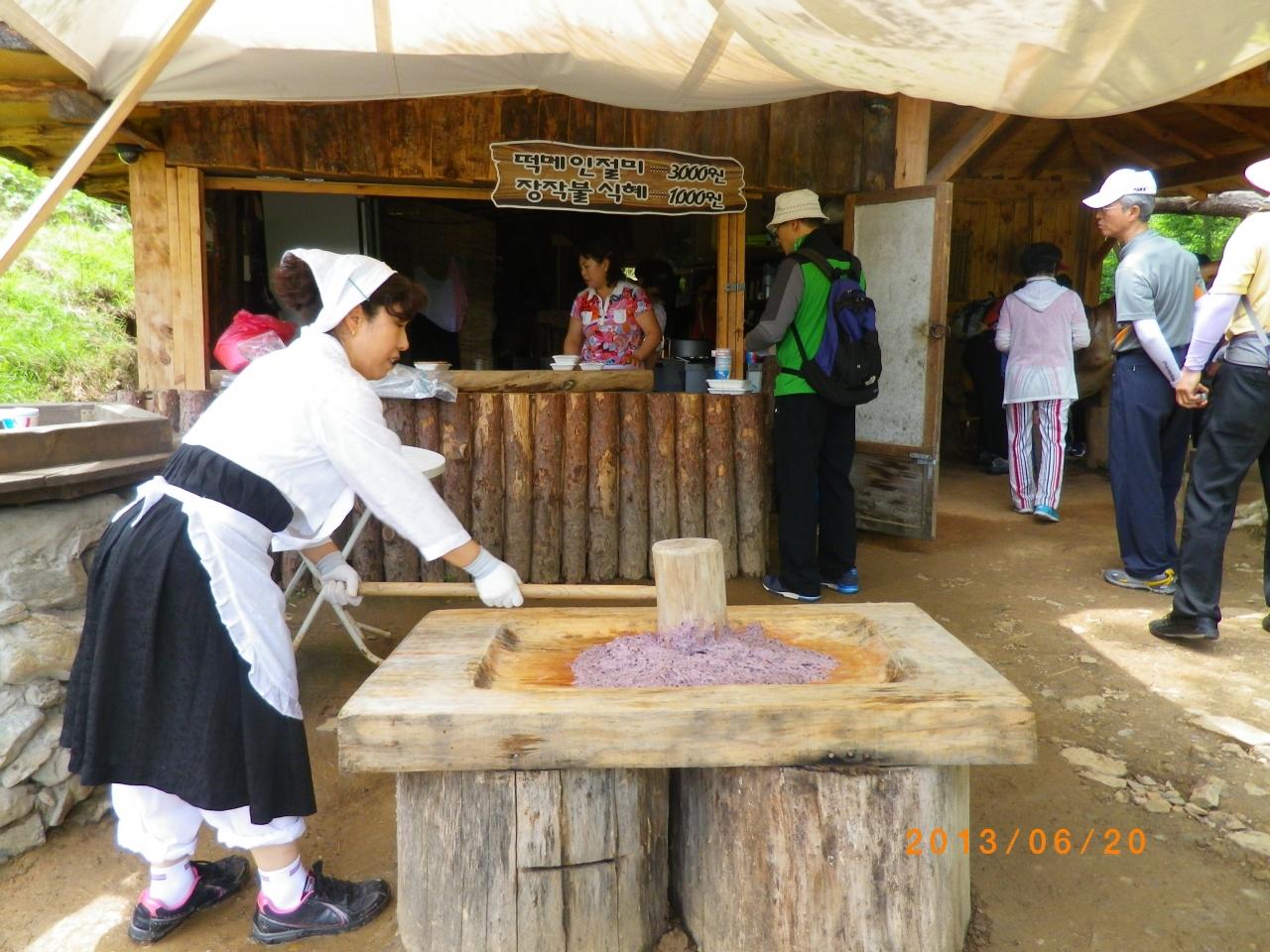 餅やシッケを飲食することができ、手前では餅つきの実演中