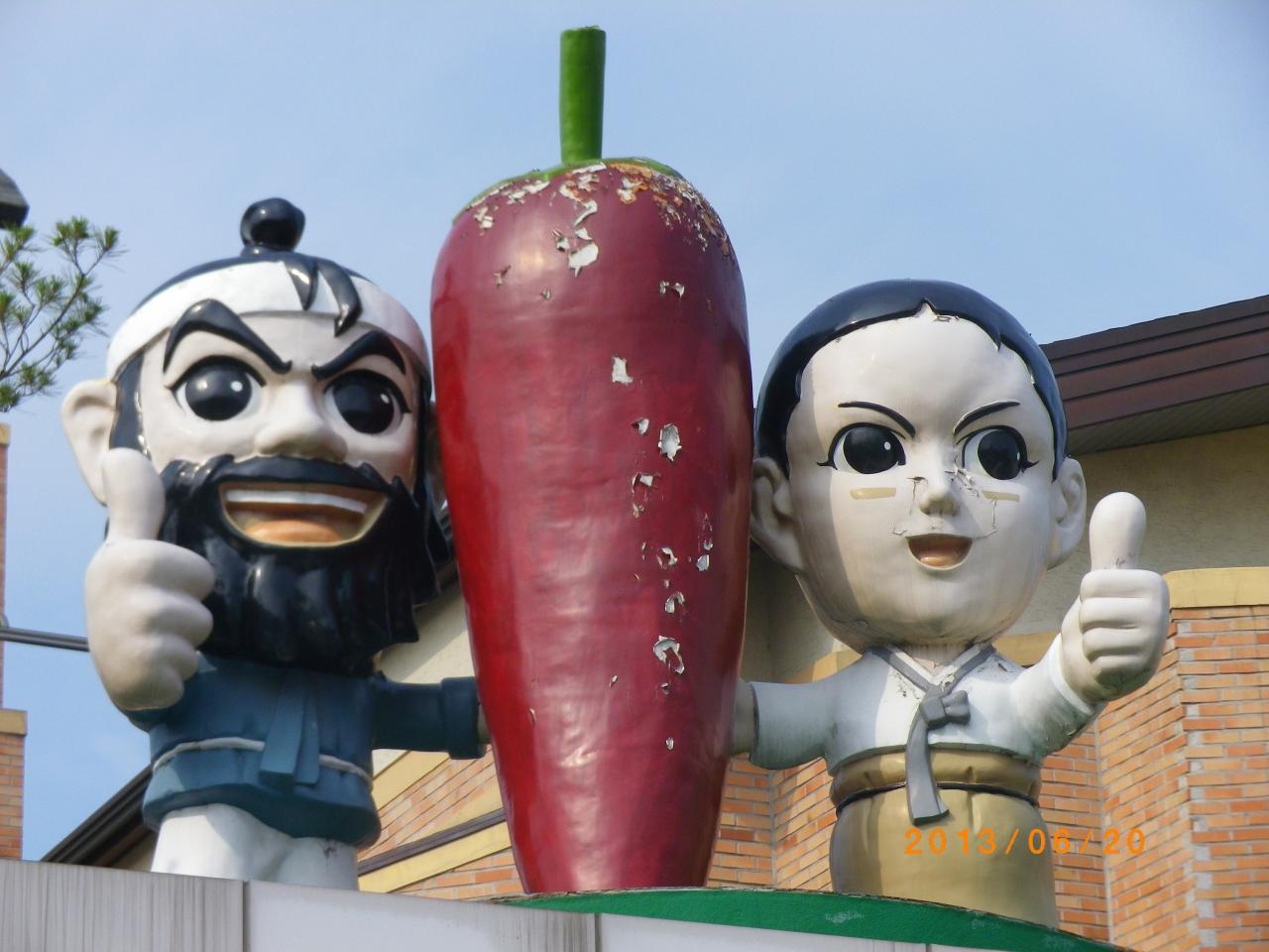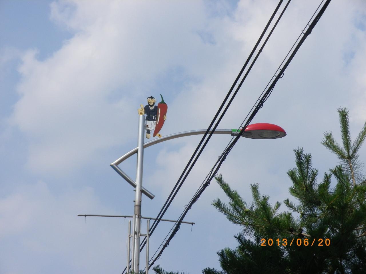 四方にはとうがらしをイメージした塔 (ケサンはとうがらしの名産地ということで) -