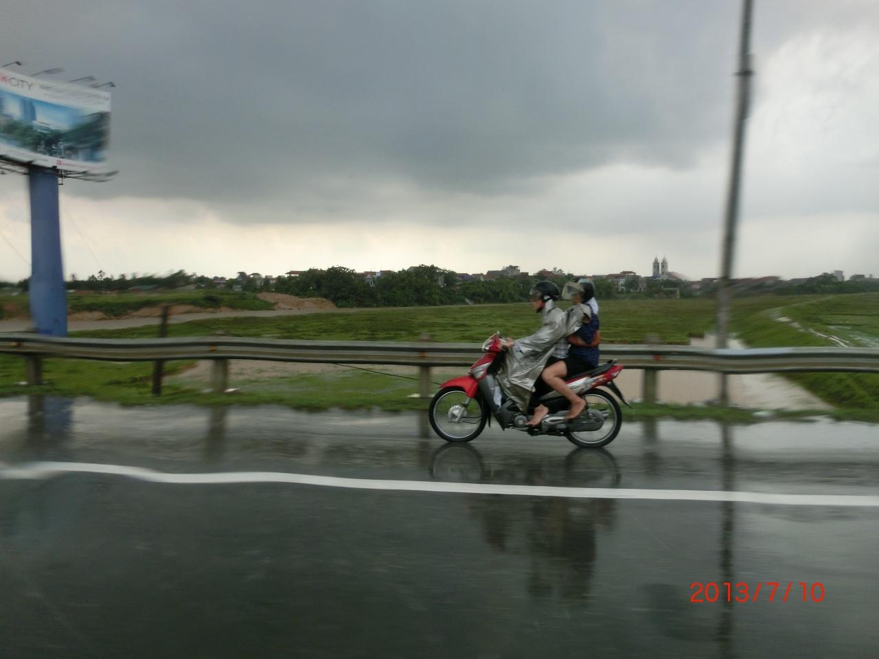 小雨になってくるとこんな光景が見られます。現地人のほとんどの移動手段はバイクなので、皆さんレインコート着用で乗られてます。...でも後ろのお姉さんびしょ濡れじゃない?!かわいそうに(+o+)