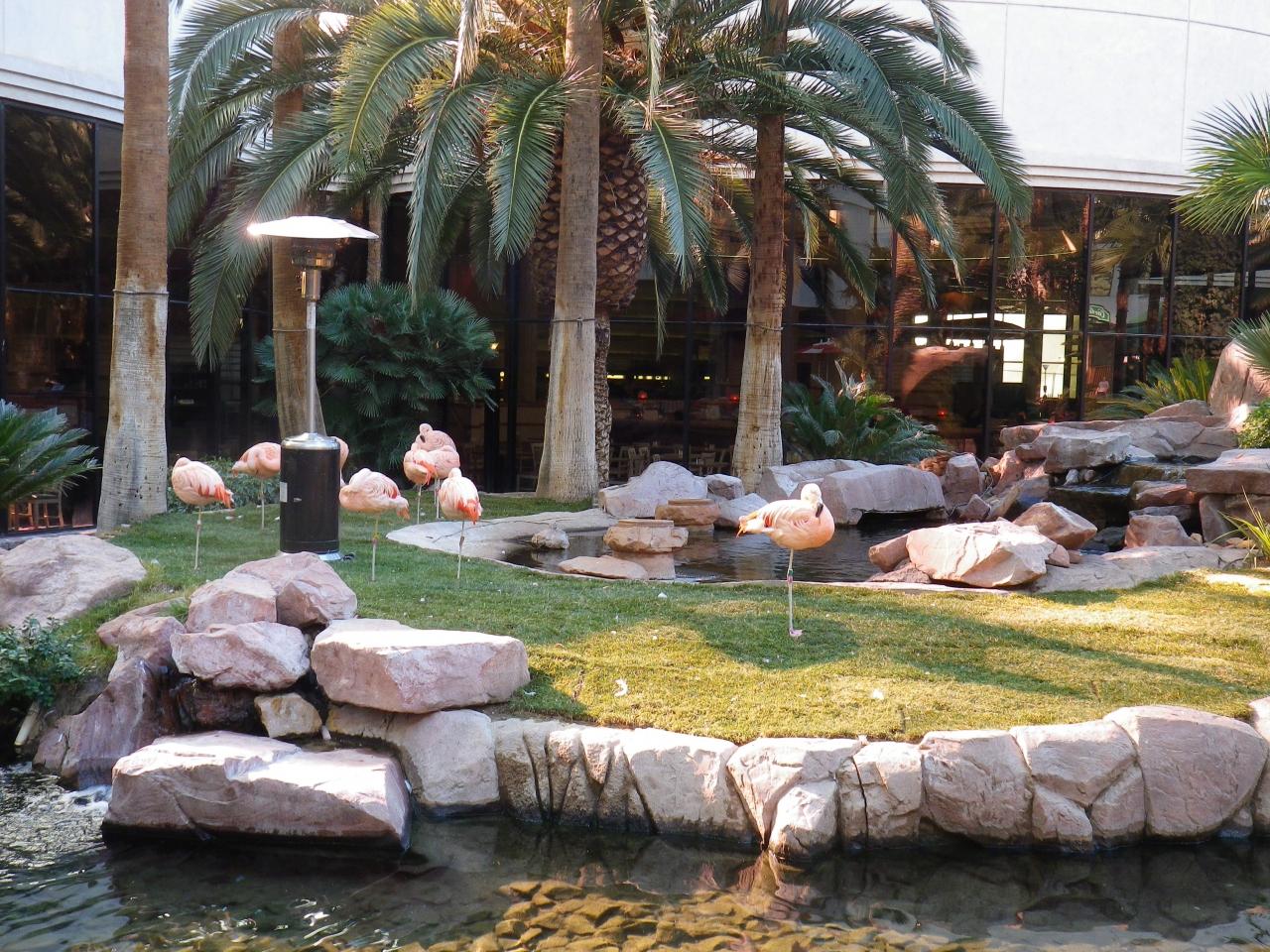 中庭には、本物のフラミンゴがいます。