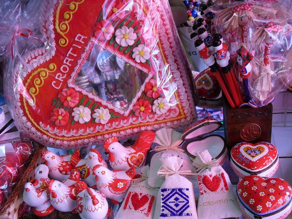 クロアチアをモチーフにしたグッズがならぶお土産店もある。