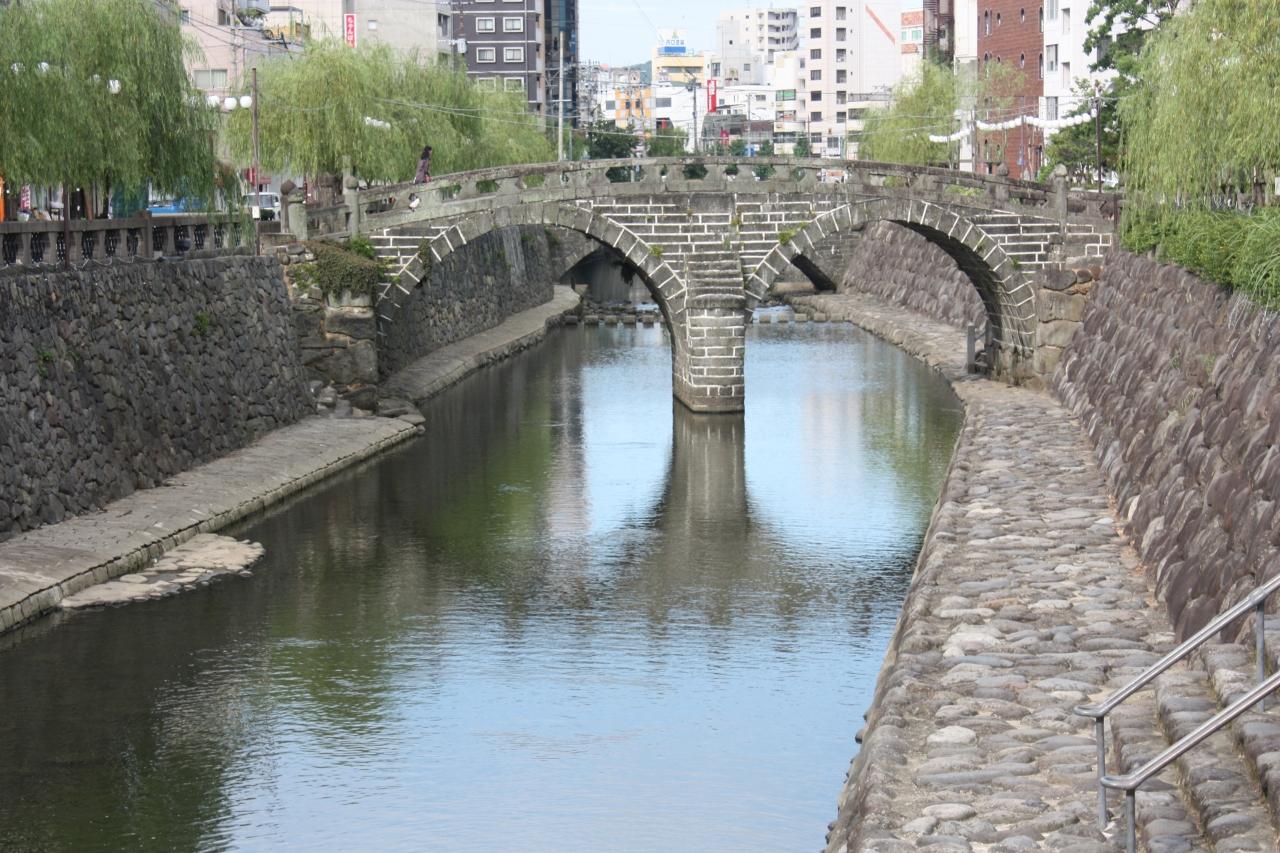中島川沿いの石橋を巡りながら歩きました。 -