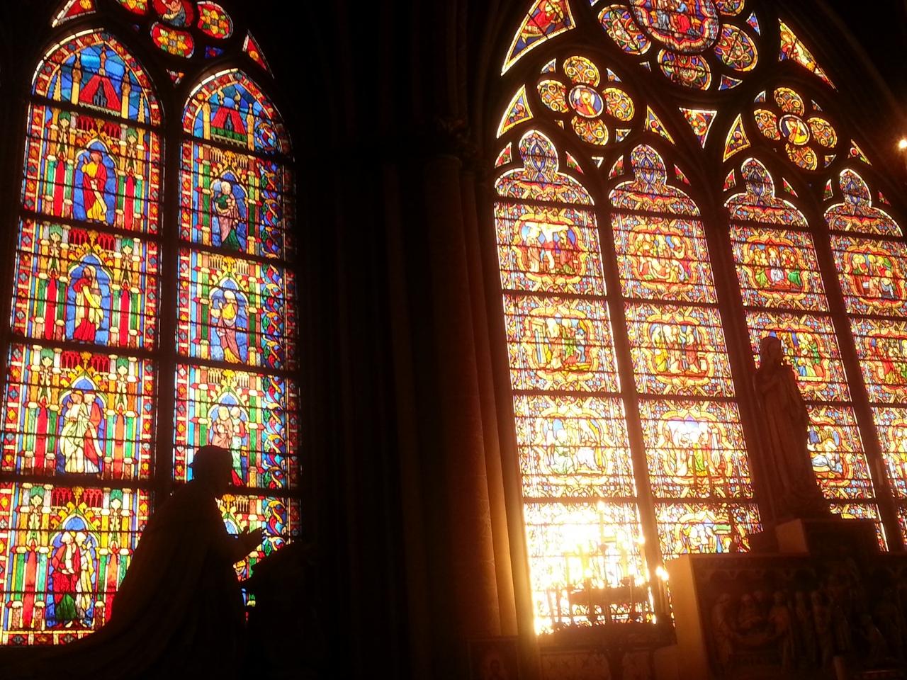 早起きし、朝日を浴びるステンドグラスを見たくて、
