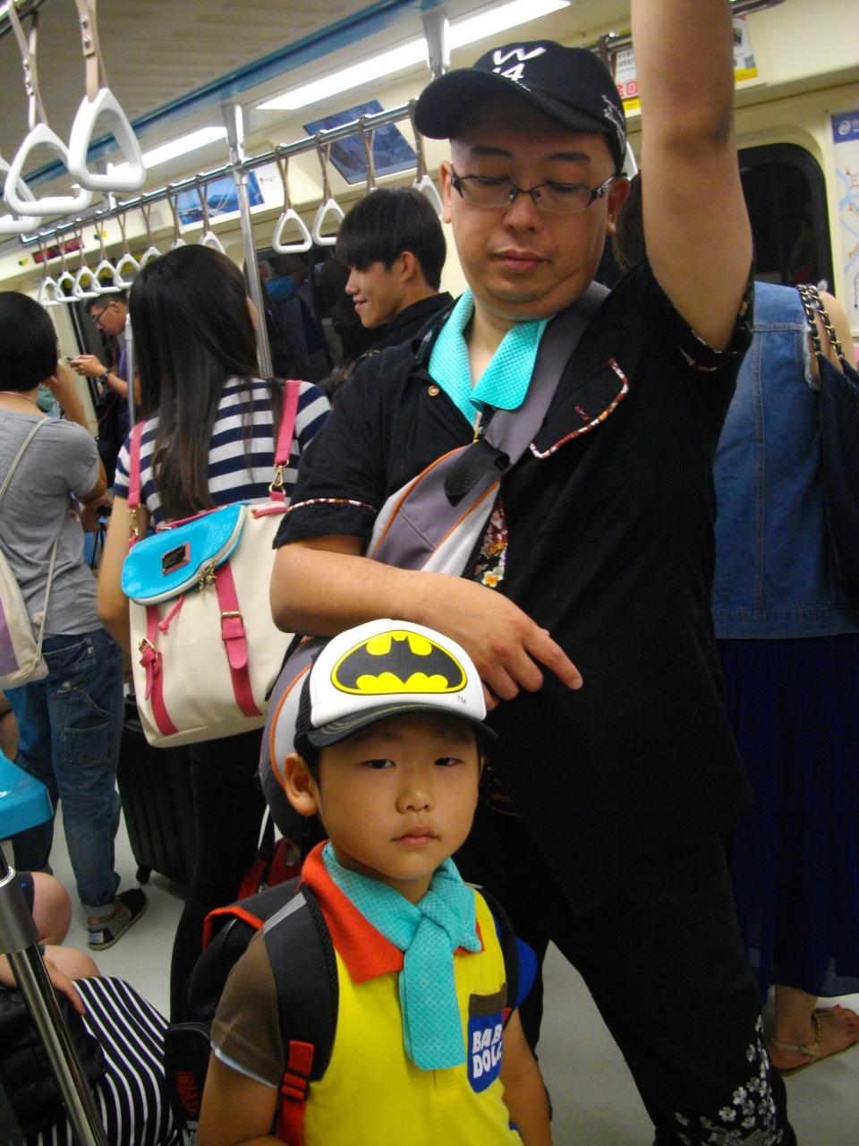 MRT車内。台北駅までは結構混んでますね