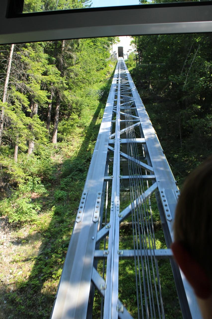 次は、ホーエンヴェルフェン城を目指します。案内所(アイスリーゼンヴェルト行きのバスに乗った所)から、歩いて登ることもできるし、ケーブルカー乗り場まで歩いて、ケーブルカーで上がることもできます。かなり疲れていたので、ケーブルカーにしました。それでも結構歩きます。