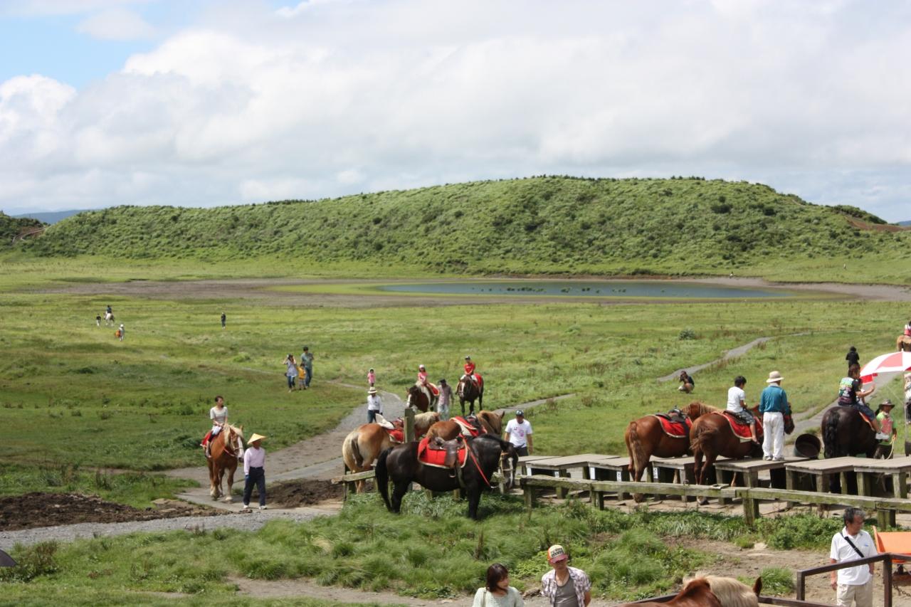 阿蘇駅から30分ほどで草千里ヶ浜に着きました。池がありました。 -