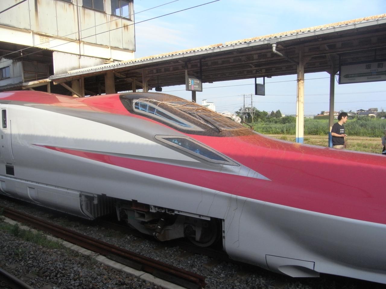 7月28日(日)登山に行くべく、地元の駅(坂町)駅のホームに出たら、秋田方面(3番線)のところに、珍しい車両がいました。以下、写真でドウゾ。