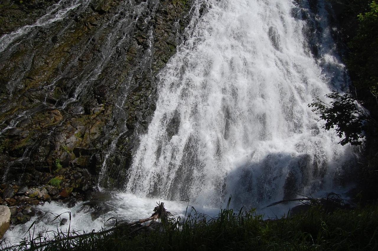 青々とした緑に囲まれた水しぶきに一時の涼しさを感じます