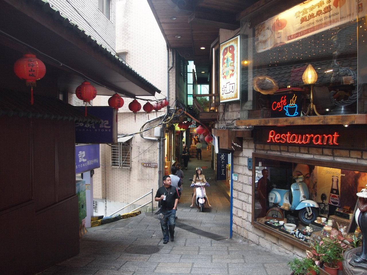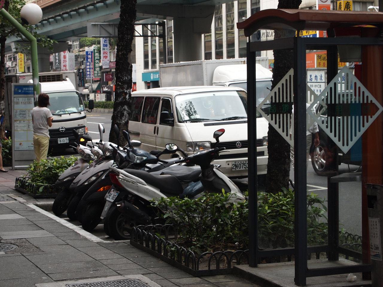 ホテルの近くに在ったオシャレな渋い小路、さすが台北!キチっと停めてます。