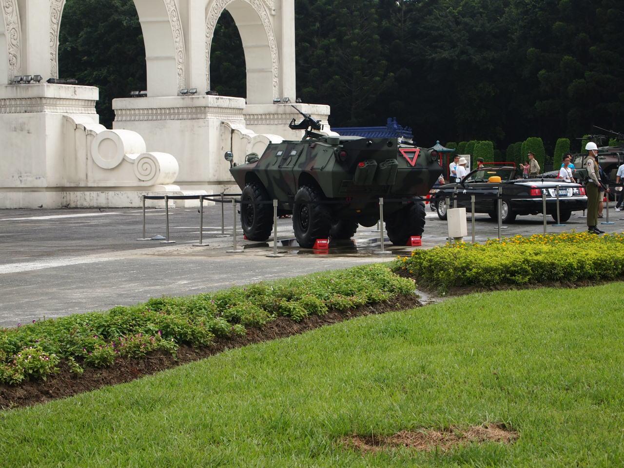 広場には何かのイベントらしく装甲車や戦車が設置されてます。