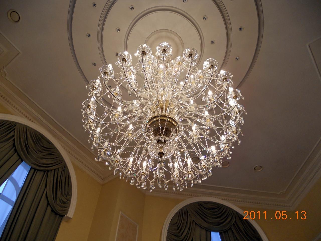 綺麗なシャンデリアがあるホテルのレストランで夕食。